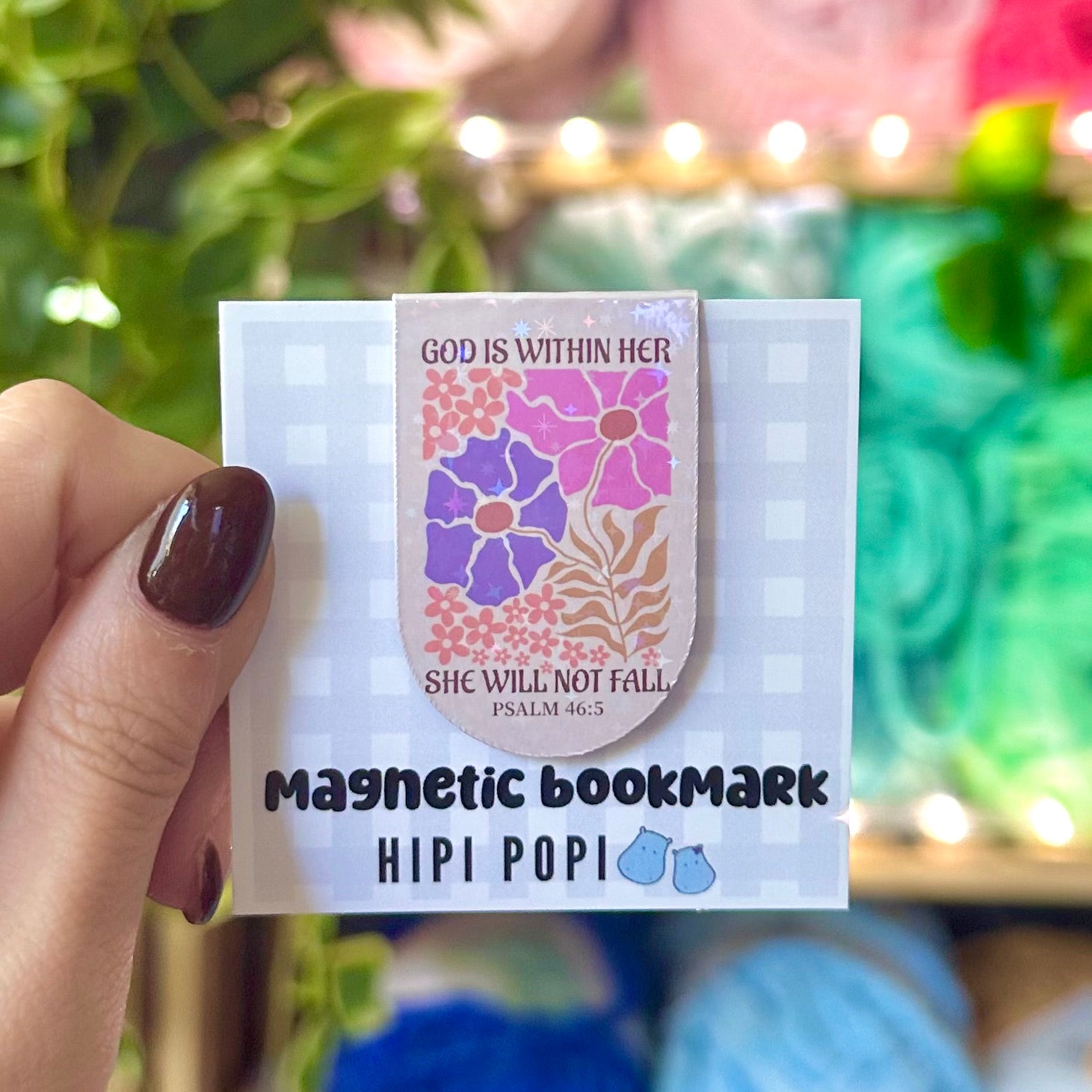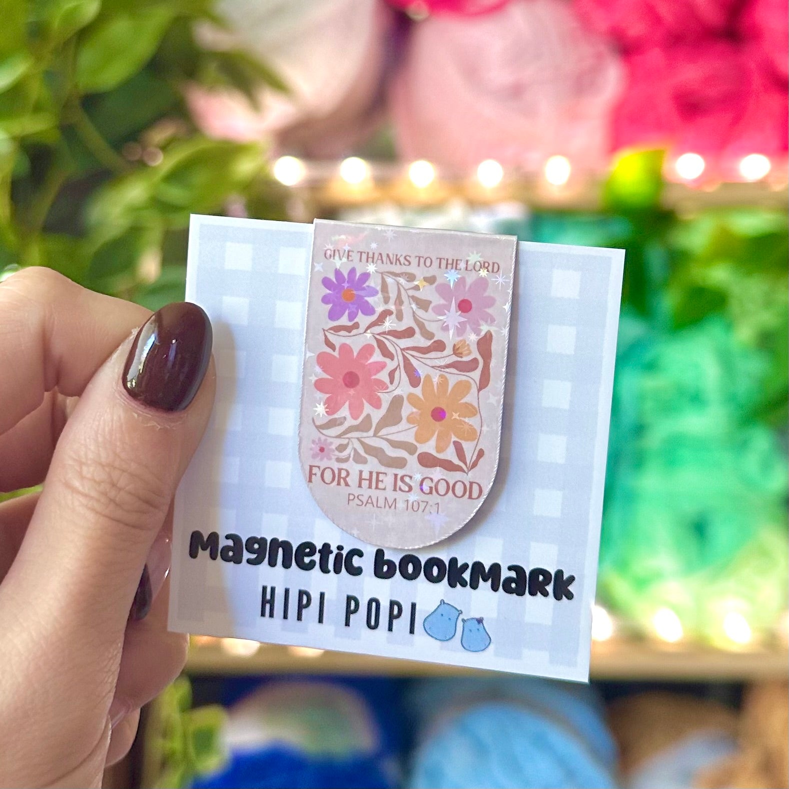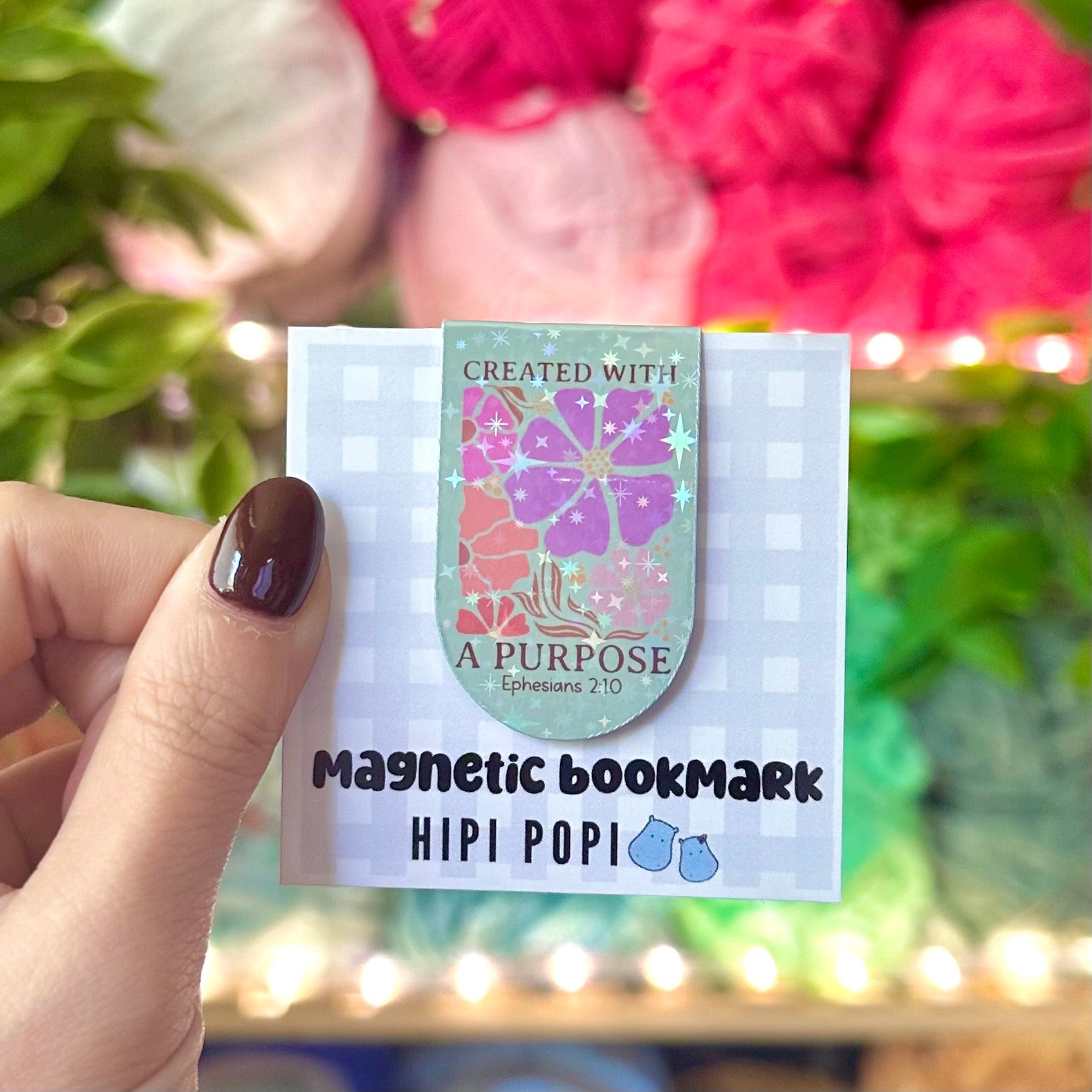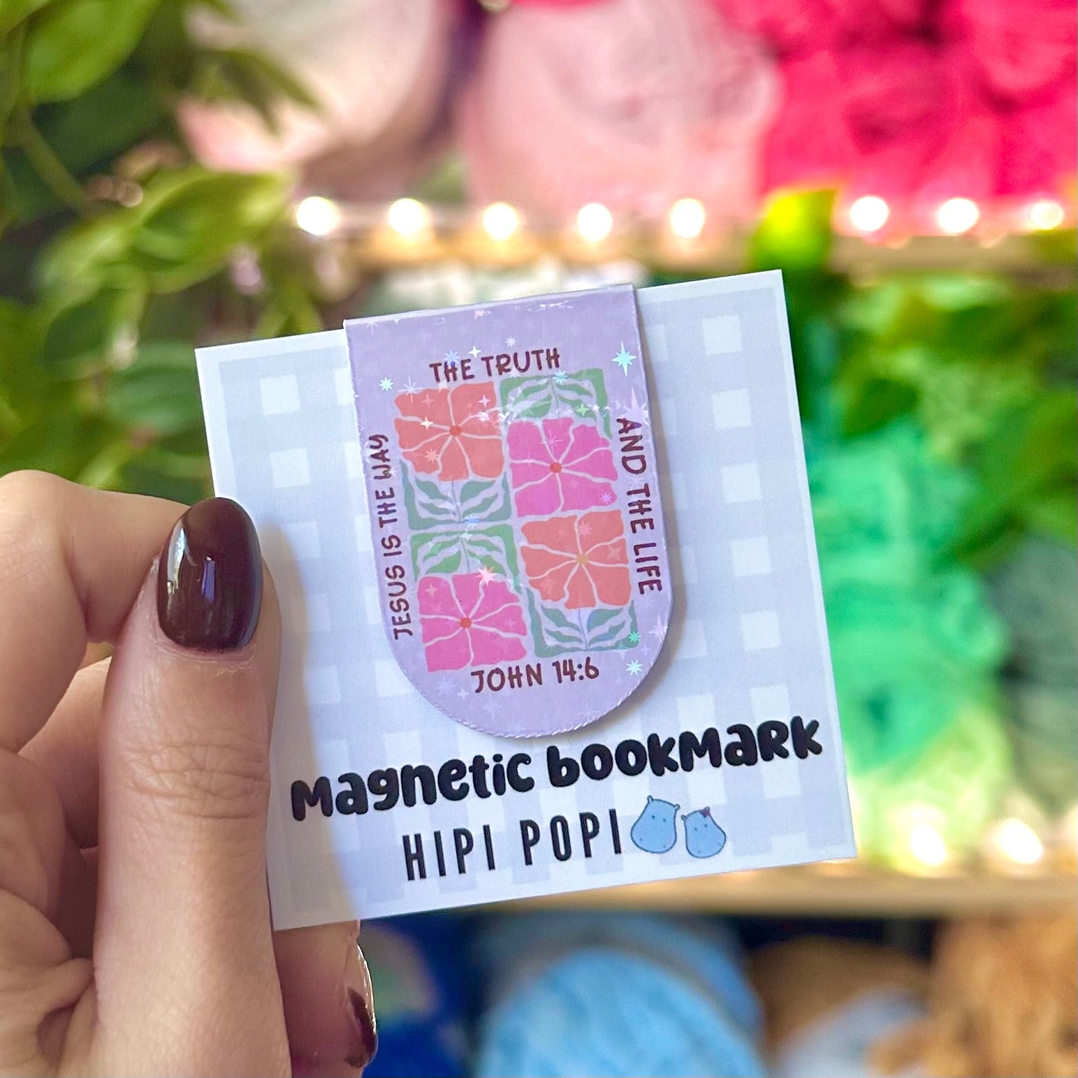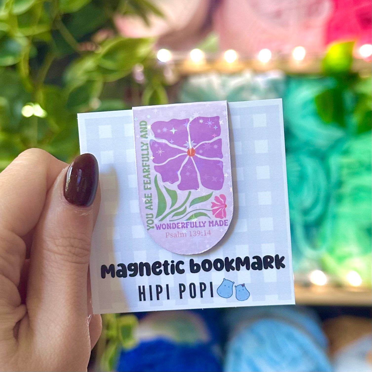 Holographic magnetic bookmark featuring a powerful Bible verse and a beautiful illustration to inspire and encourage your faith every time you open your book.
